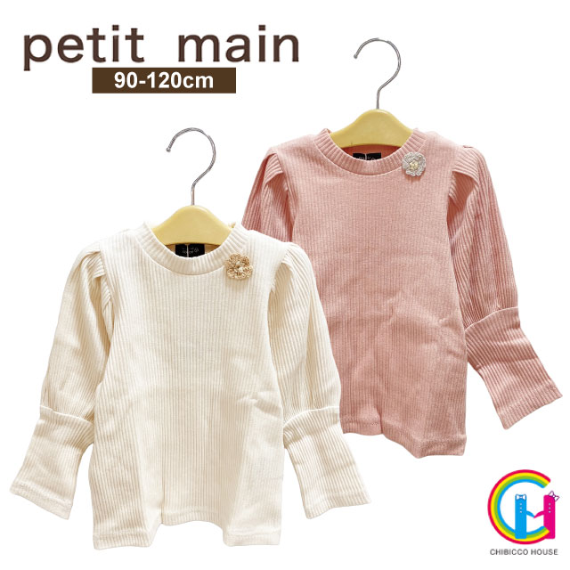【2022秋冬新作】Petit main 【オーガビッツ】パフテレコロンT プティマイン No.9623208 ( 子供服 女の子 キッズ トドラー トップス ロンT 長袖 Tシャツ 出産祝い 可愛い ガーリー 上品 シンプル 無地 パフスリーブ 白 オフ ホワイト ライト ピンク 秋 冬)