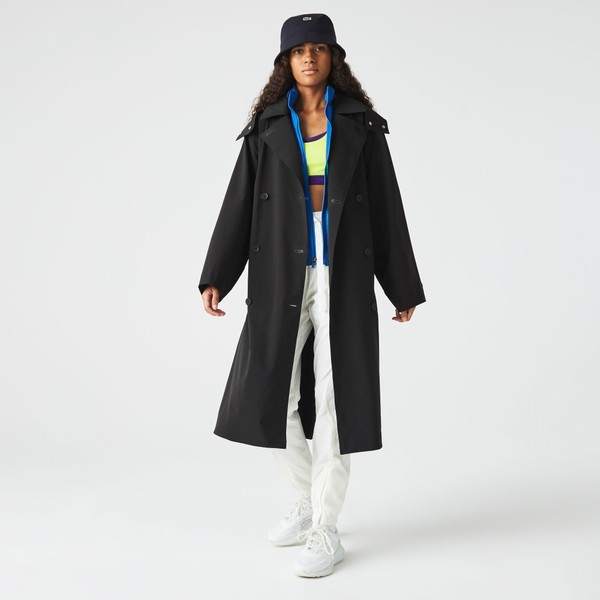 LACOSTE 撥水ストレッチトレンチコート ラコステ コート/ジャケット トレンチコート ブラック グリーン【送料無料】