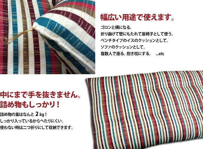 日本製 長座布団 クッション 68cm×120cm 綿100% 国産 抱き枕 送料無料 ごろ寝 お昼寝 マット 弾力性抜群 高品質 短納期 国産特集 02P26Mar16