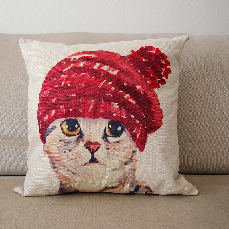 送料無料 コットンリネン ねこ柄 #boushi 45cm クッションカバー リゾート 北欧 クッション 猫 ネコ キャット 動物 ベージュ 北欧 45cm 西海岸 ハワイアン