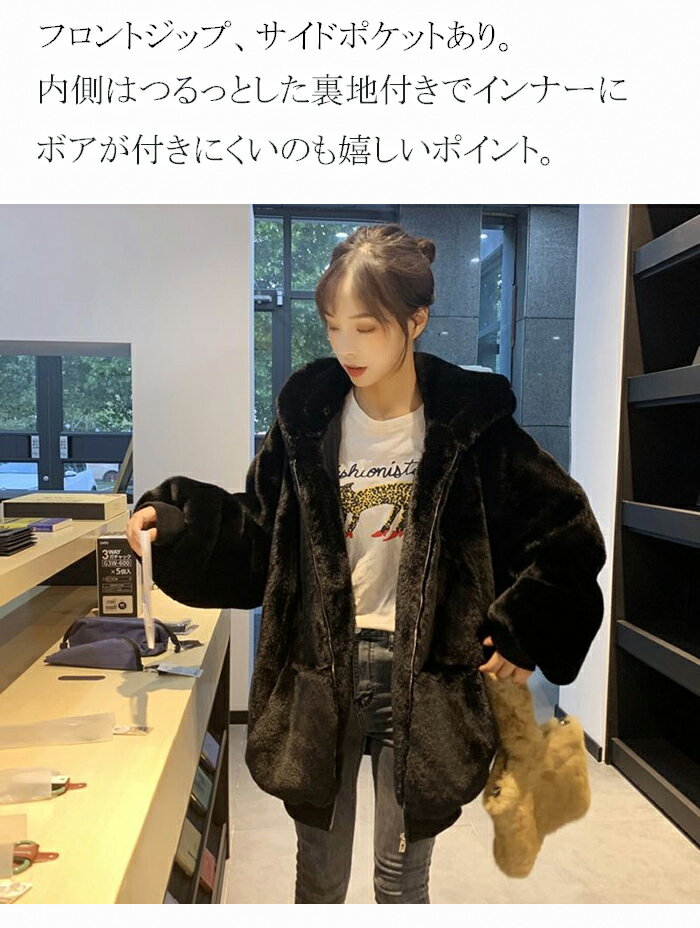 ボア ブルゾン レディース ボアジャケット 大きいサイズ 秋 冬 ボア フード付き アウター コート ファー もこもこ 防寒 大人 ショート丈 フリースジャケット 厚手 体型カバー 無地 送料無料
