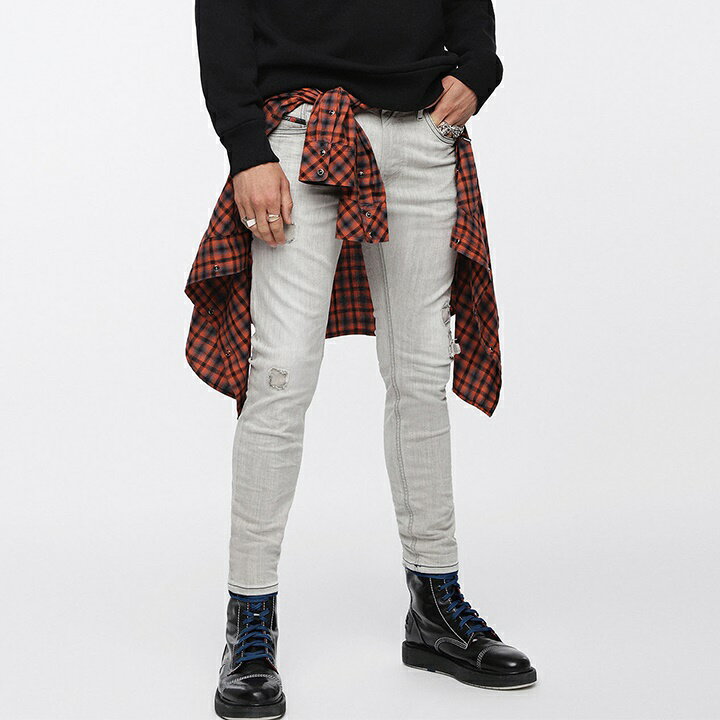 ■DIESEL ディーゼル メンズ■ヴィンテージクラッシュダメージ加工 ストレッチ スリムスキニー チノパン ジーンズ デニム パンツ【THOMMER】【W26〜36】【L30】【グレージュ】die-m-p-b8-039 《メーカー希望小売価格38,500円》